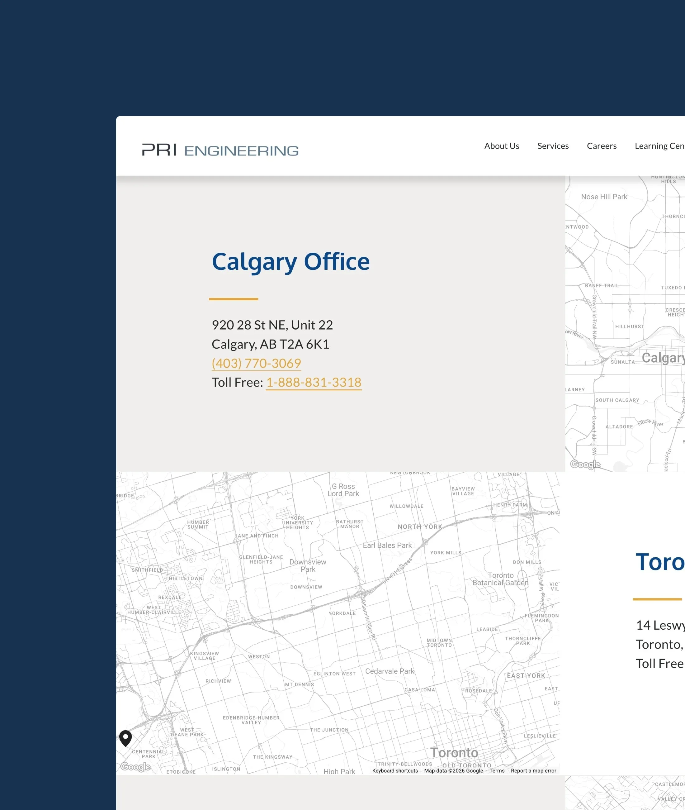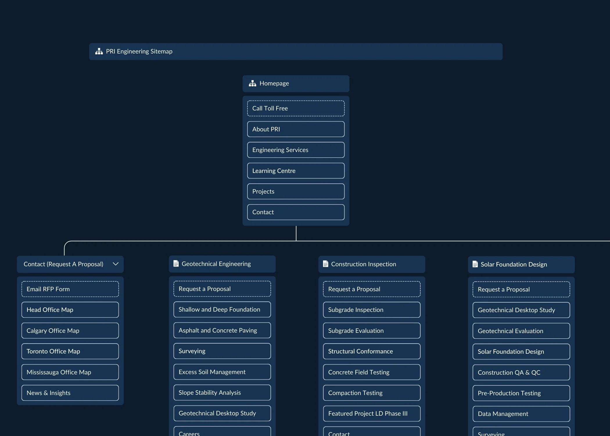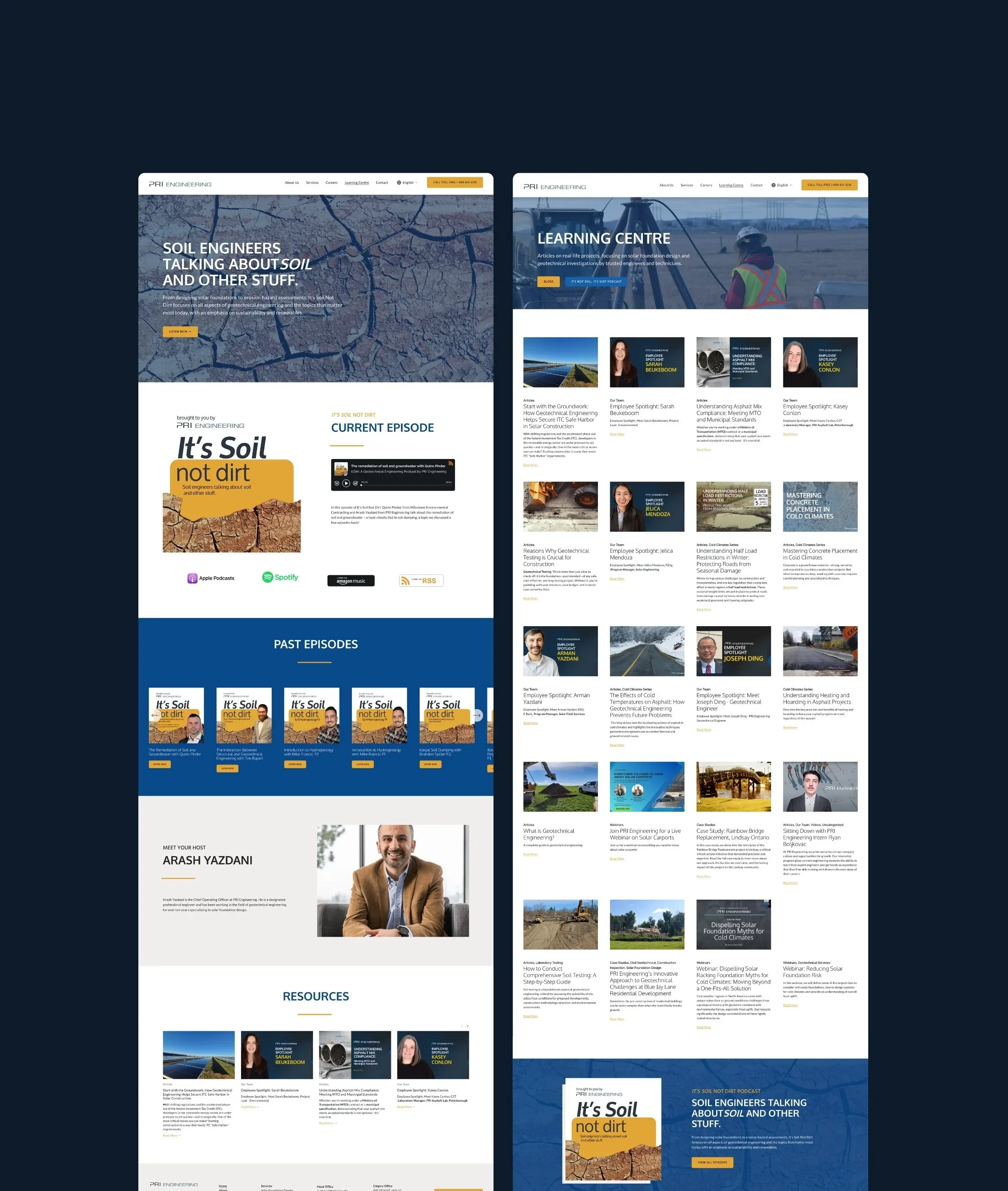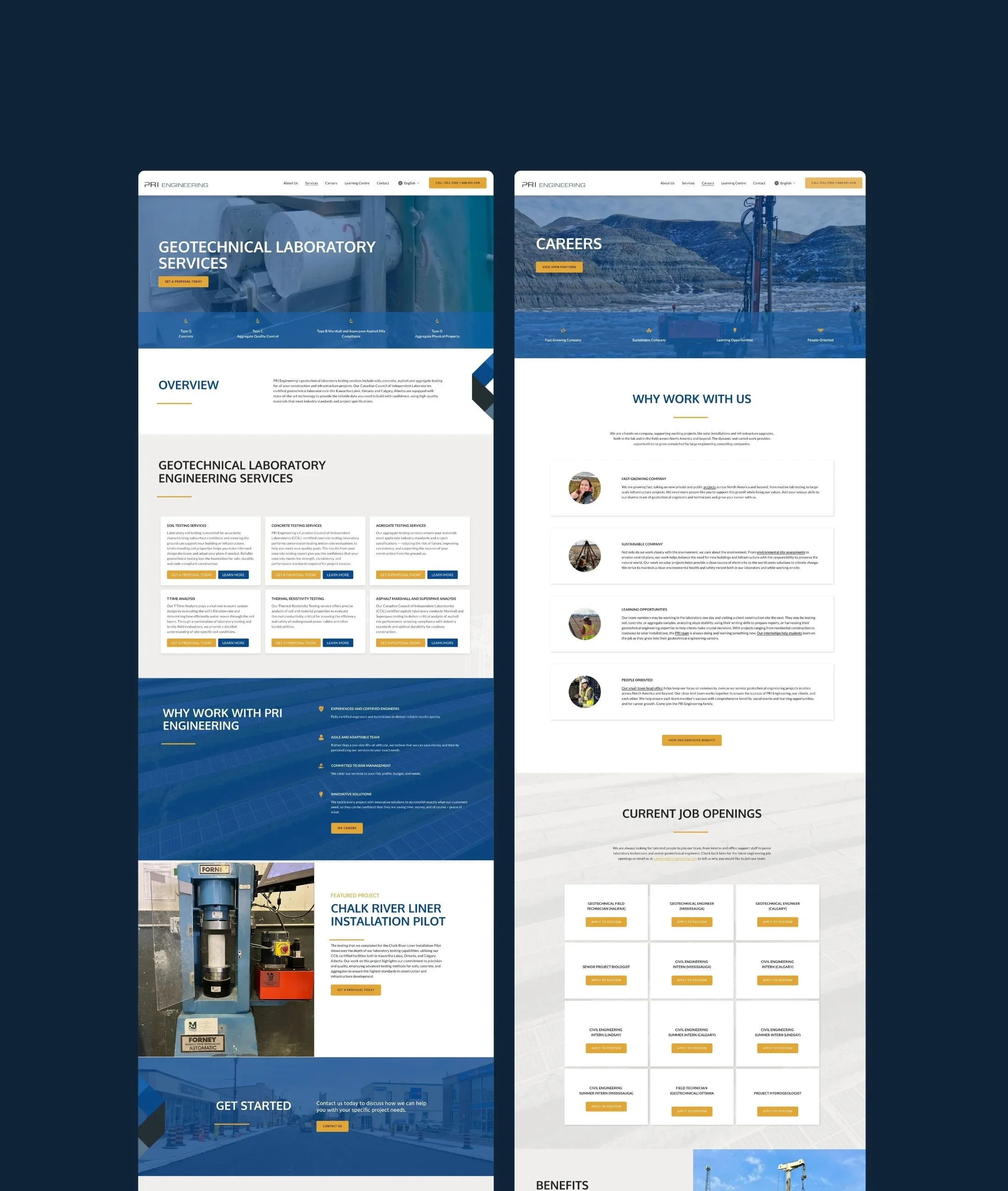 National geotechnical consulting firm, PRI Engineering, contacted us to refresh their branding and redesign their 55 page website. We did a strategic refresh to give the brand a sleek, modern look complete with updated brand fonts and colours. With the website, we focused on a clean, intuitive design that makes it easy for visitors to learn more about their services and reach out for a quote.